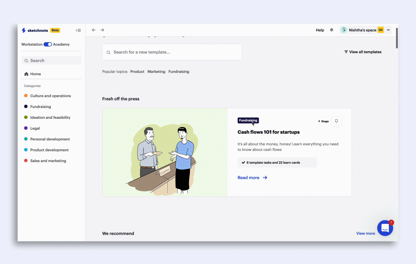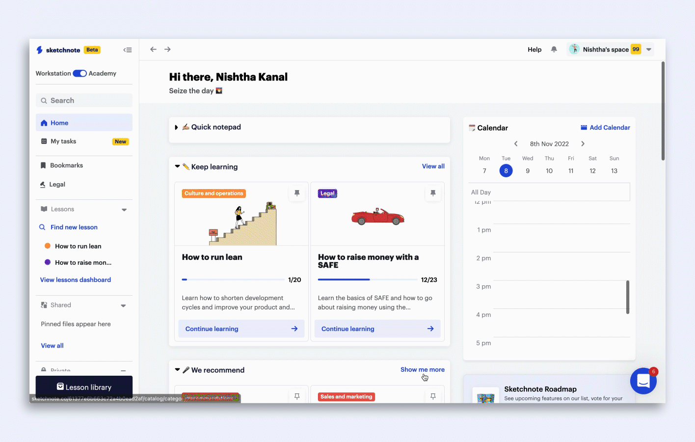 Click on the Lesson Library tab on the bottom left of your screen to explore a world of startup knowledge catalog. Choose your next lesson from categories such as Culture and operations, Fundraising, Personal Development and a lot more!